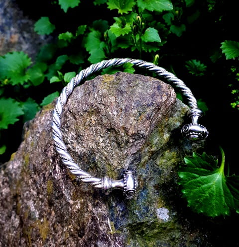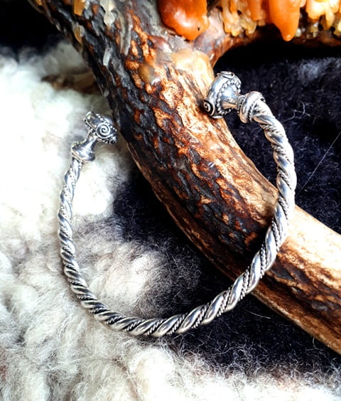 Celtycka biżuteria oprócz roli ozdobnej posiada często znaczenie symboliczne. Jednym z najbardziej popularnych motywów jest spirala będąca symbolem między innymi długowieczności. Masywna, srebrna bransoleta jest ciekawym dopełnieniem celtyckiego torquesa. Bransoleta podobnie jak torques z końcówkami zdobionymi spiralami wprost nadzwyczajnie komponuje się ze średniowiecznym ubiorem. Rzemieślniczy kunszt idący w parze z ponadczasową symboliką sprawiają, że bransoleta może być idealnym prezentem docenionym przez każdą obdarowaną osobę.