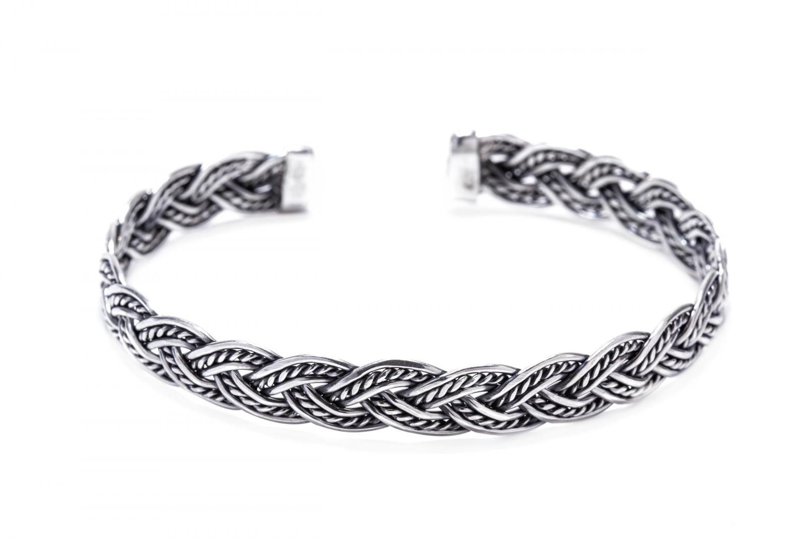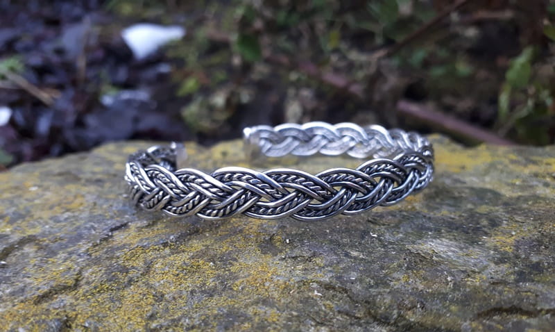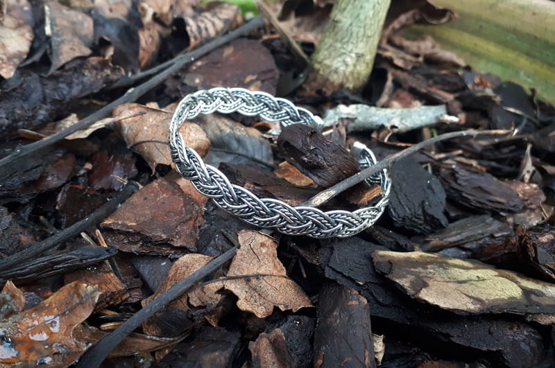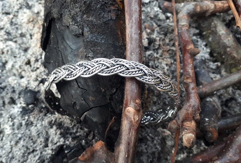 Bardzo precyzyjnie wykonana, ręcznie skręcana, srebrna bransoleta. Jej elastyczność umożliwia łatwe dopasowanie do wielkości nadgarstka. Inspiracją do wykonania bransolety było wzornictwo z epoki wikingów. Charakterystyczne dla tamtego okresu różnego rodzaju sploty, plecionki, węzły w formie pierścieni, naszyjników i bransolet chętnie noszone były zarówno przez kobiety jak i mężczyzn.