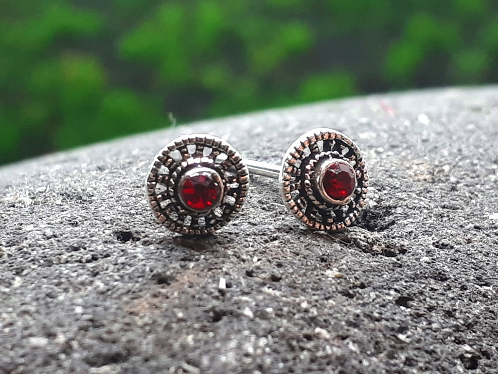 Kolczyki RAIDA srebro cyrkonia czerwona