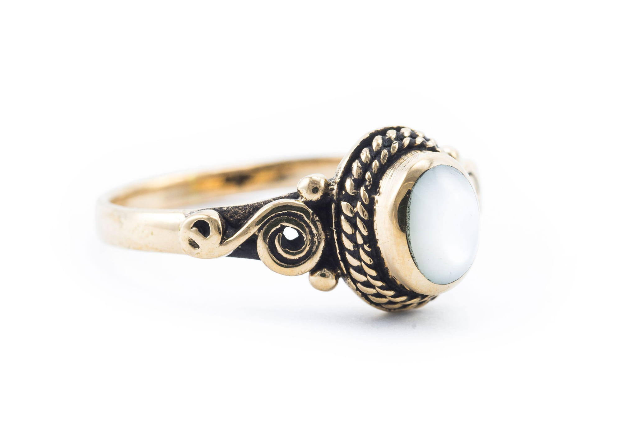 Pierścień średniowieczny ALICE masa perłowa brąz