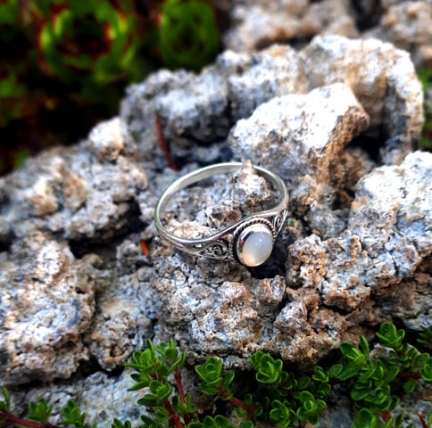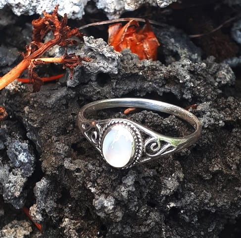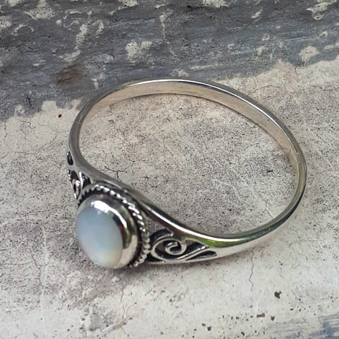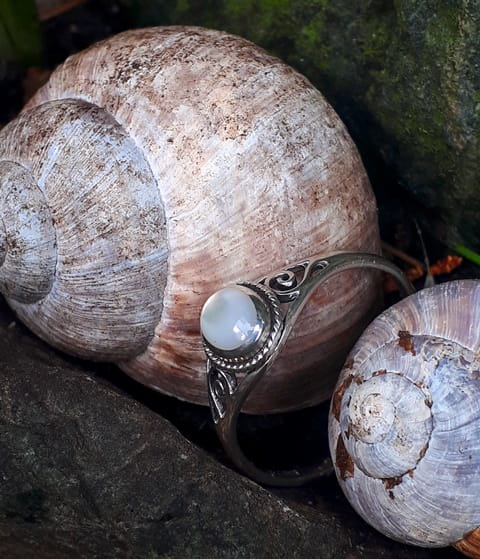 Pierścień średniowieczny LUCY masa perłowa srebro