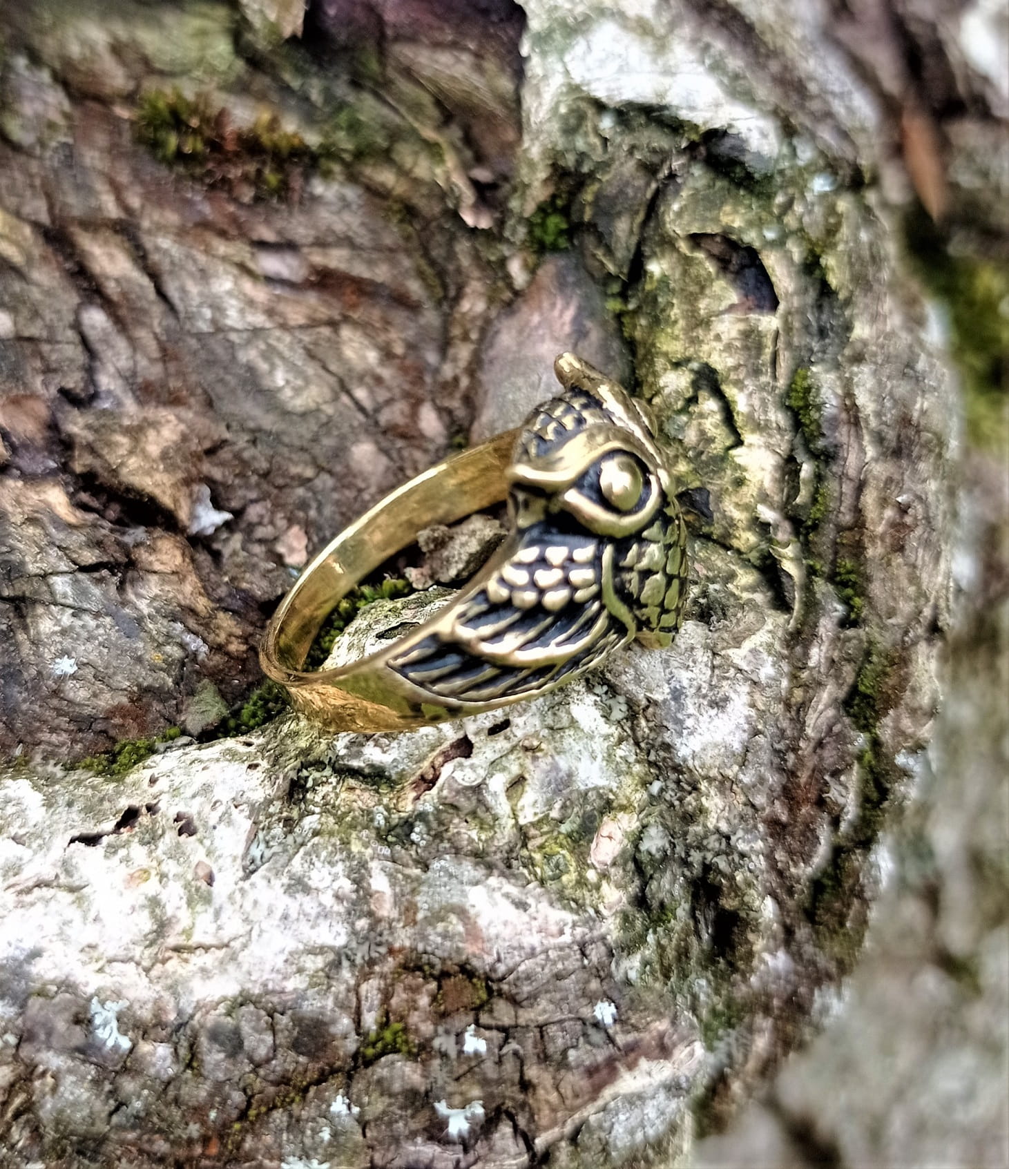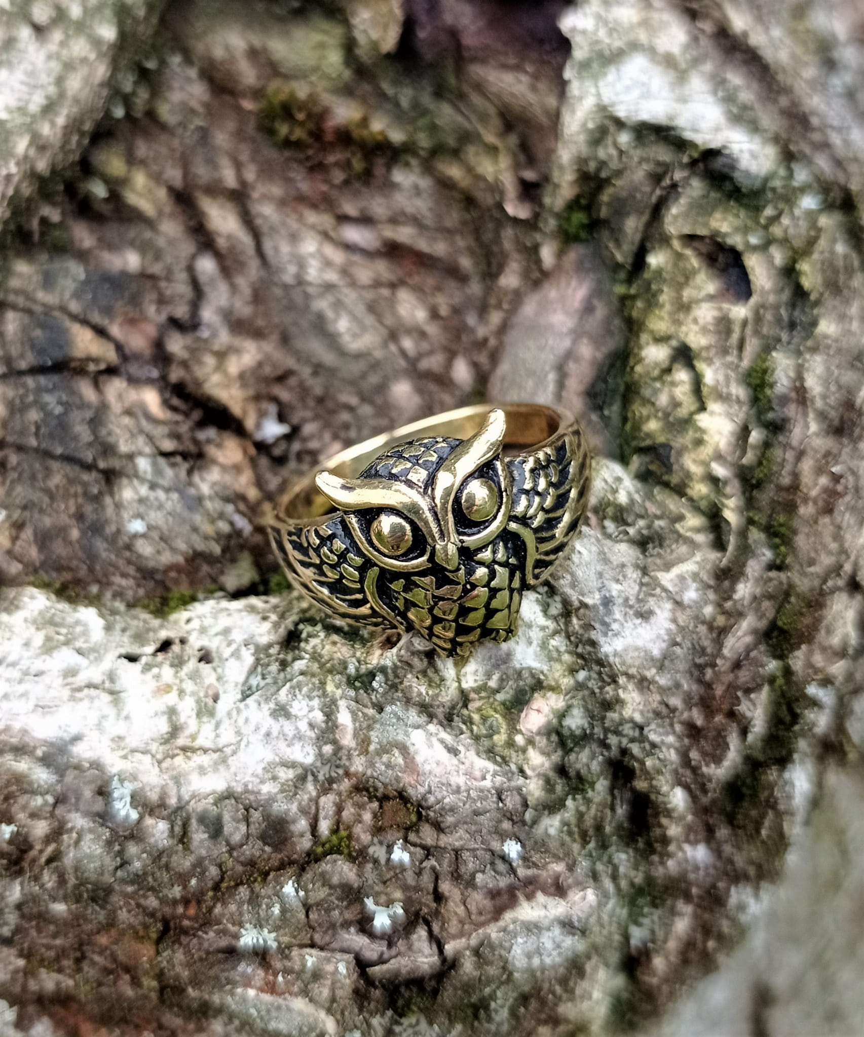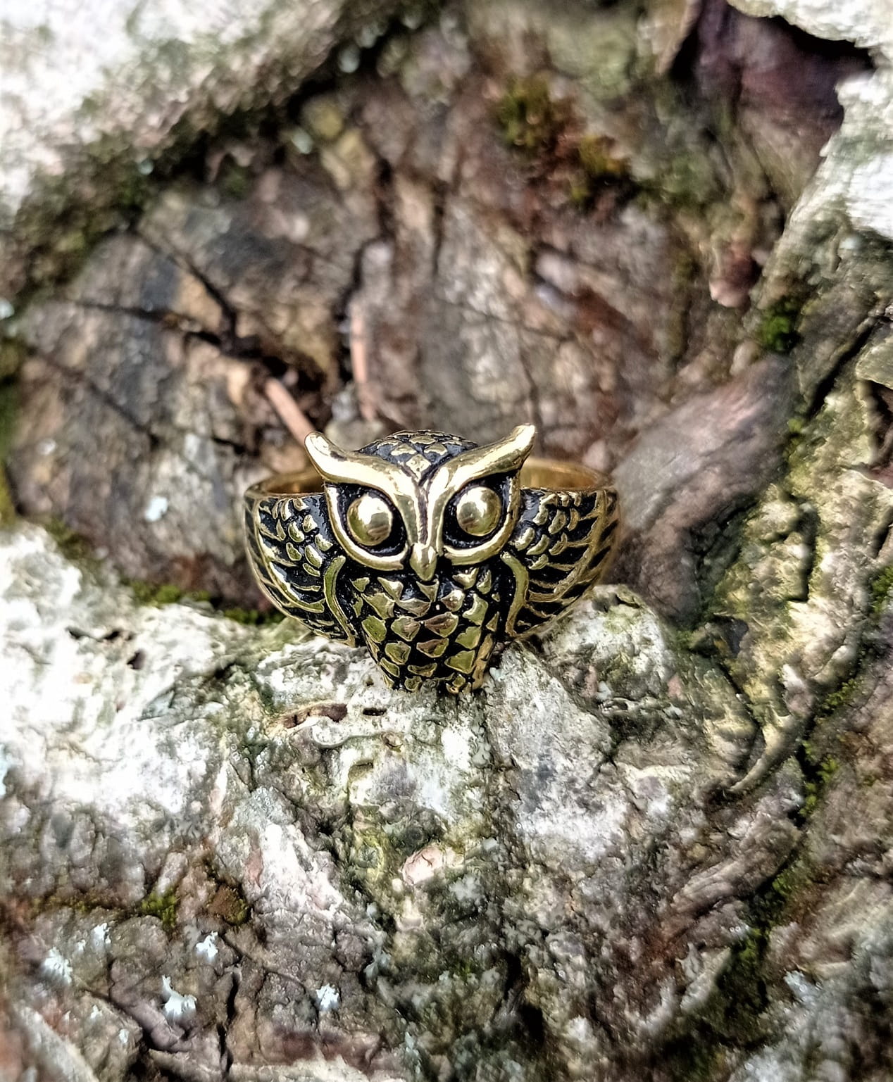 Wyjątkowy pierścionek w formie sowy z brązu.