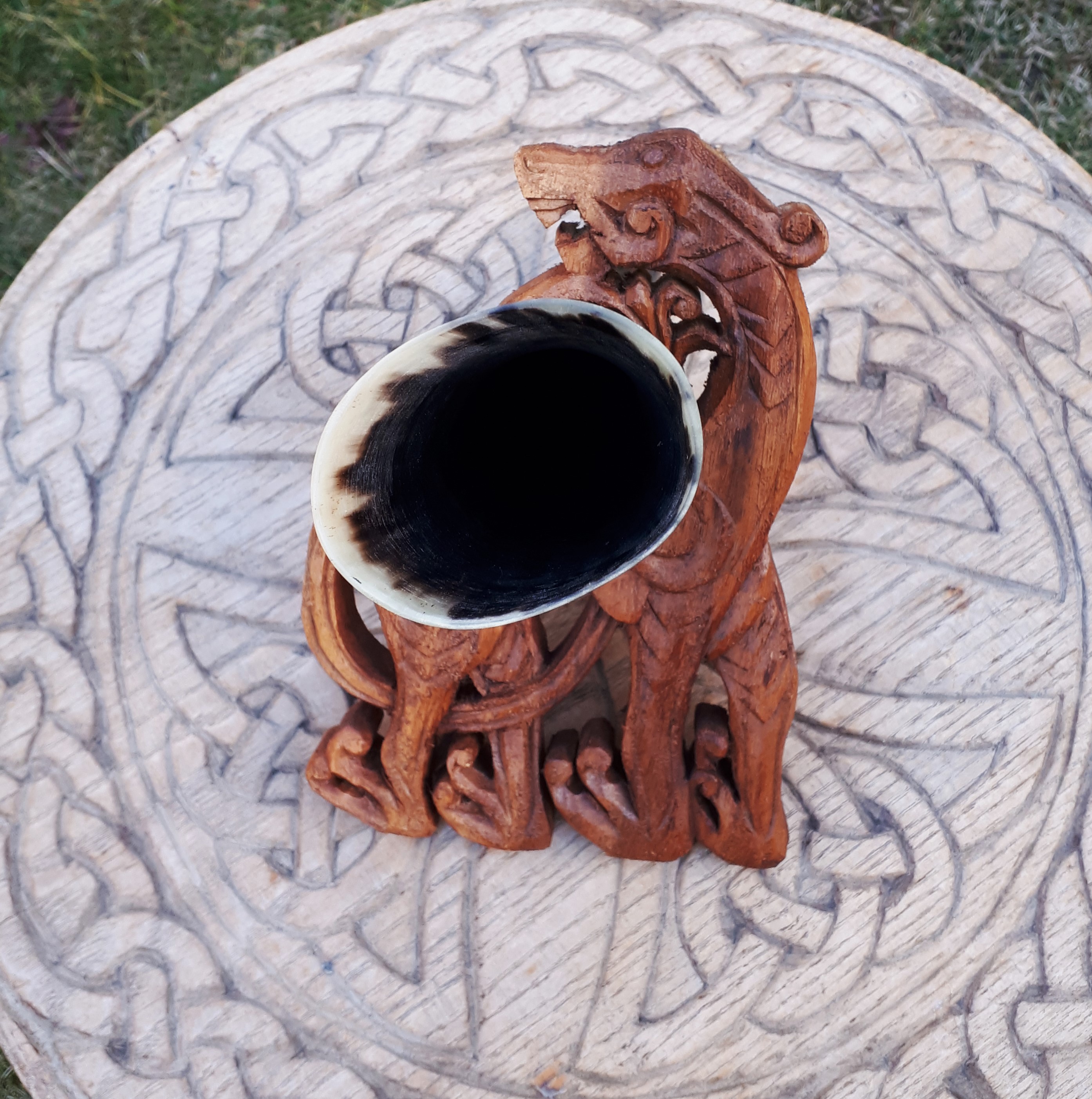 Wykonany z naturalnego rogu bydła afrykańskiego watussi. Idealny do wznoszenia toastów i zaspokajania pragnienia. Warto mieć go zawsze przy sobie jak prawdziwy wiking.