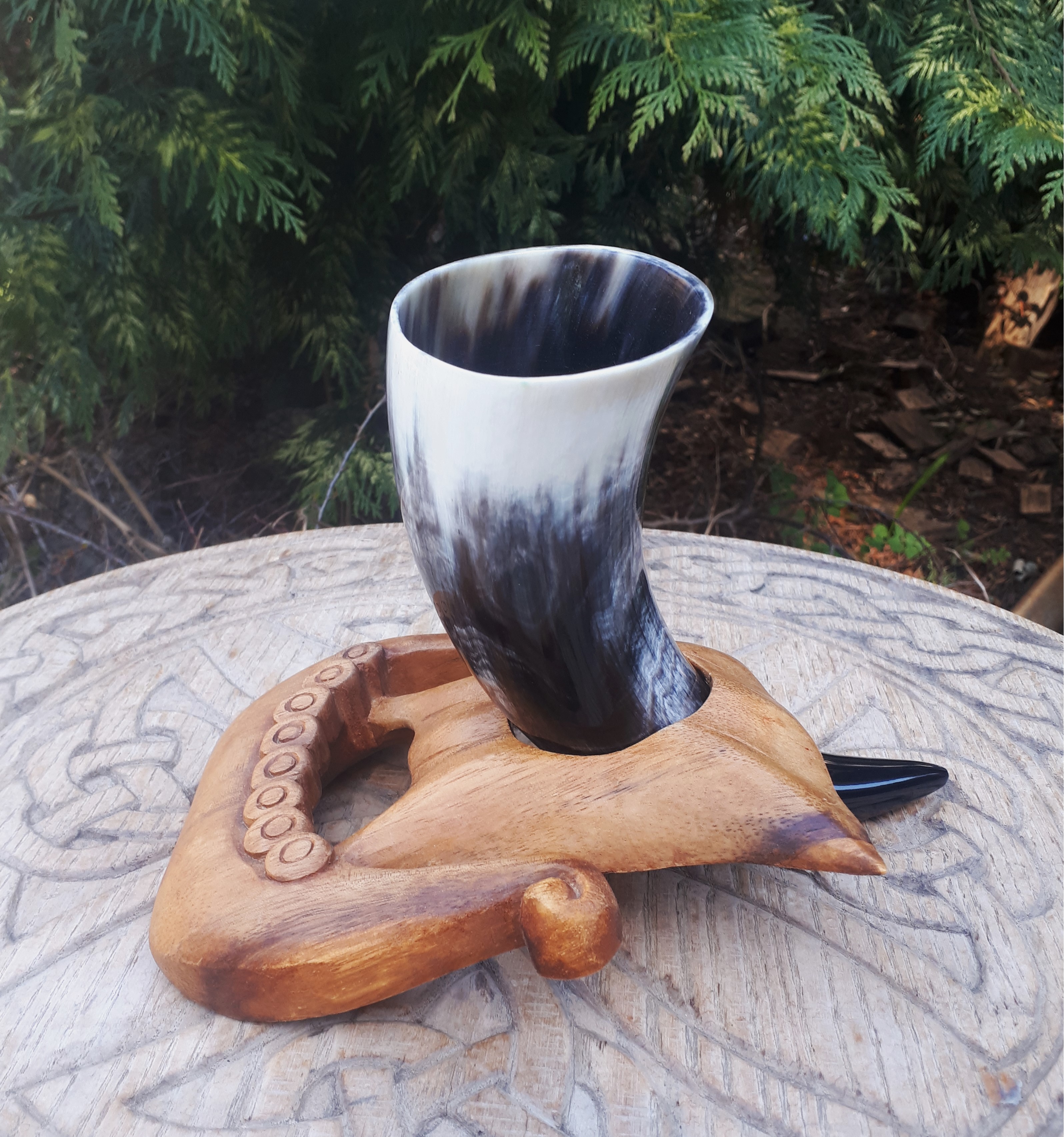 Wykonany z naturalnego rogu bydła afrykańskiego watussi. Idealny do wznoszenia toastów i zaspokajania pragnienia. Warto mieć go zawsze przy sobie jak prawdziwy wiking.