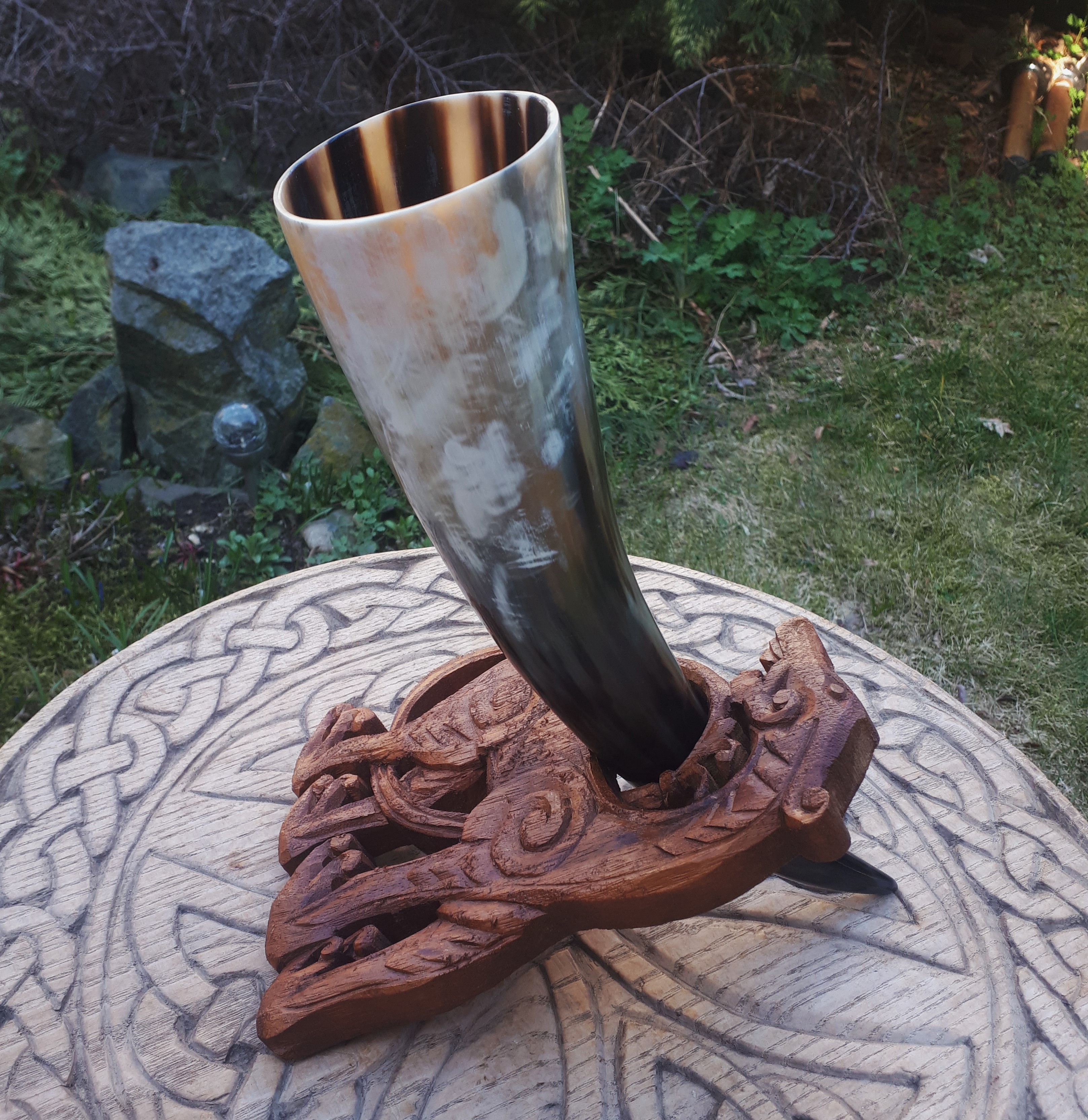Wykonany z naturalnego rogu bydła afrykańskiego watussi. Idealny do wznoszenia toastów i zaspokajania pragnienia. Warto mieć go zawsze przy sobie jak prawdziwy wiking.