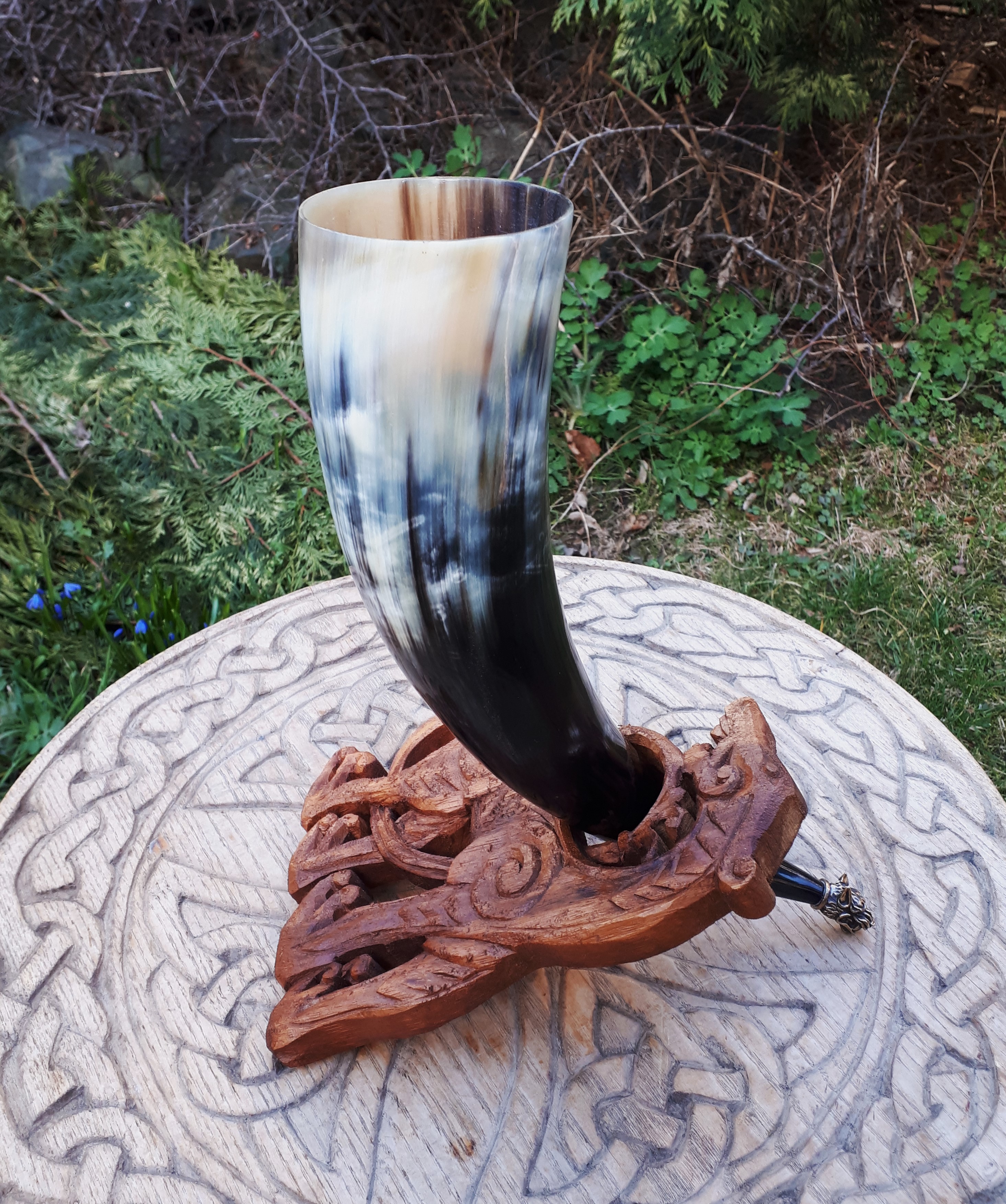 Wykonany z naturalnego rogu bydła afrykańskiego watussi. Idealny do wznoszenia toastów i zaspokajania pragnienia. Warto mieć go zawsze przy sobie jak prawdziwy wiking.