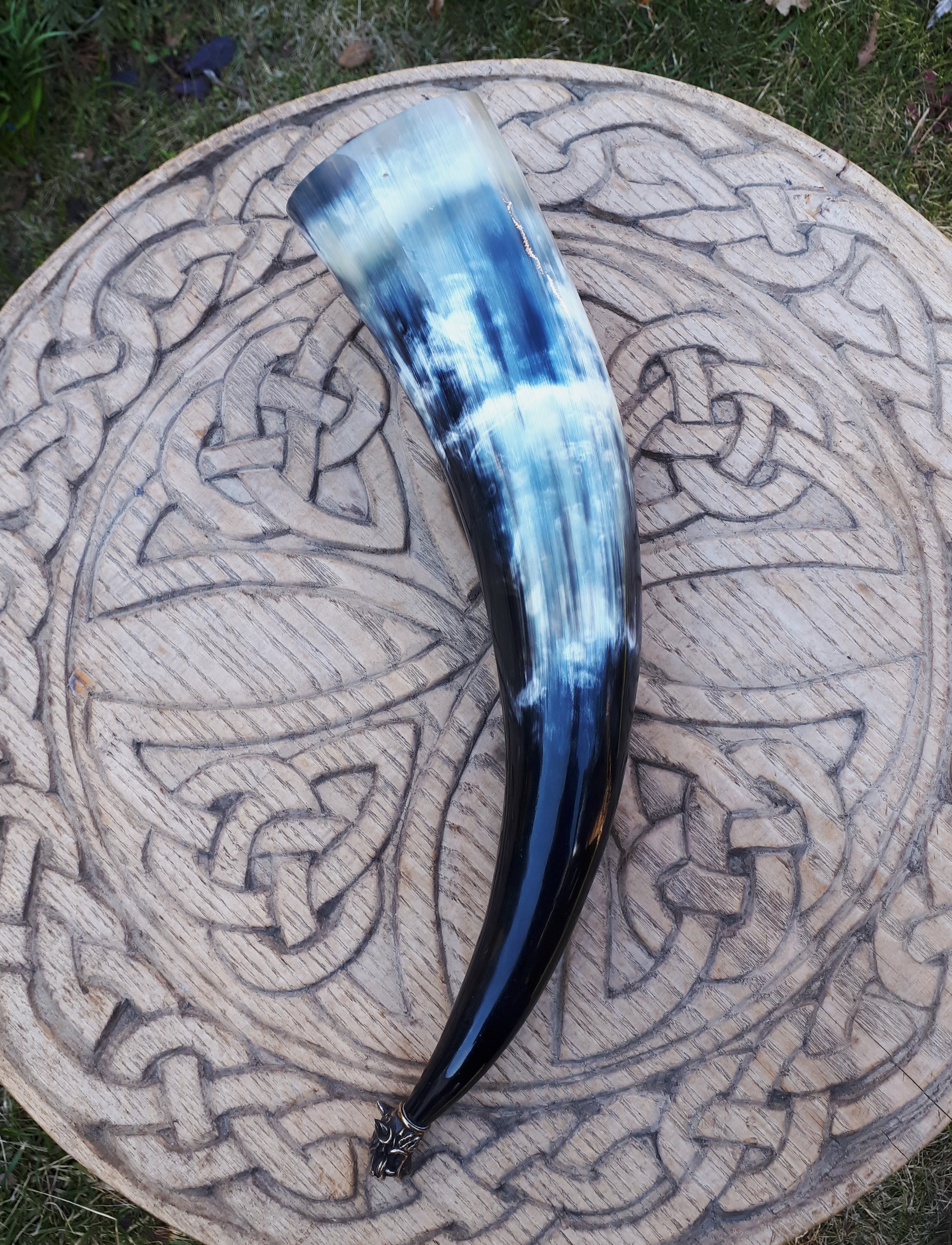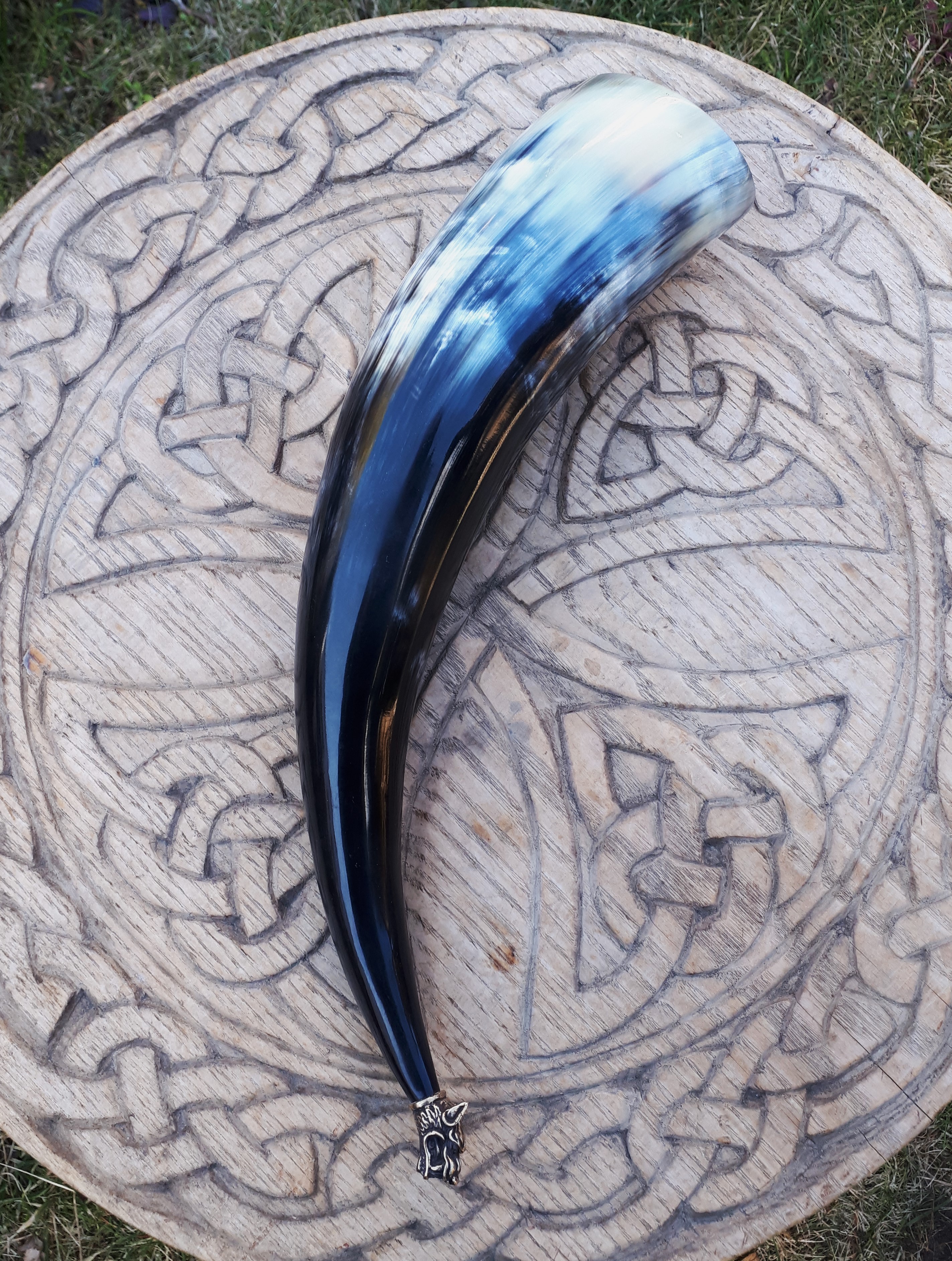 Róg do picia 0,5 polerowany z głową wilka