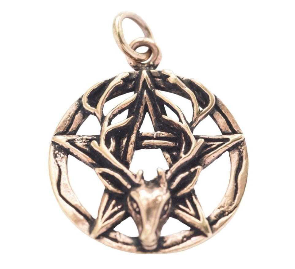Celtycki bóg Cernunnos z pentagramem, to olśniewające połączenie dwóch silnych symboli w jednym amulecie.