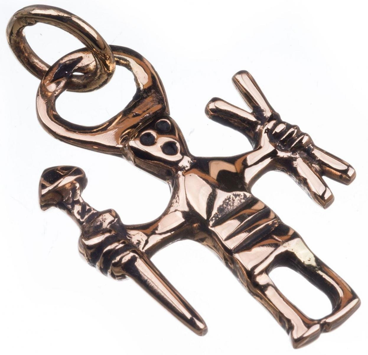 Zawieszka jest wykonana z solidnego brązu, co nadaje jej trwałość i charakter. Ten unikalny wisiorek przedstawia boga Odyna w jego majestatycznej postaci. w dłoniach trzyma dwa rytualne przedmioty kultu. Zawieszka jest starannie wykonana, z dbałością o najmniejsze detale. Jej brązowy kolor dodaje jej szlachetności i siły.